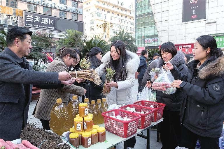 12月13日至14日,陇南市武都区外纳镇联动周边6个乡镇,在武都城区办起“冬至大集”。陇南市地处秦岭和岷山两大山系交会地带,崇山峻岭间孕育出花椒、油橄榄、茶叶、柑橘等一大批特色农产品。集市上,来自乡村的优质土特产集中亮相,吸引众多居民前来品尝、选购。 新华社记者 郎兵兵 摄