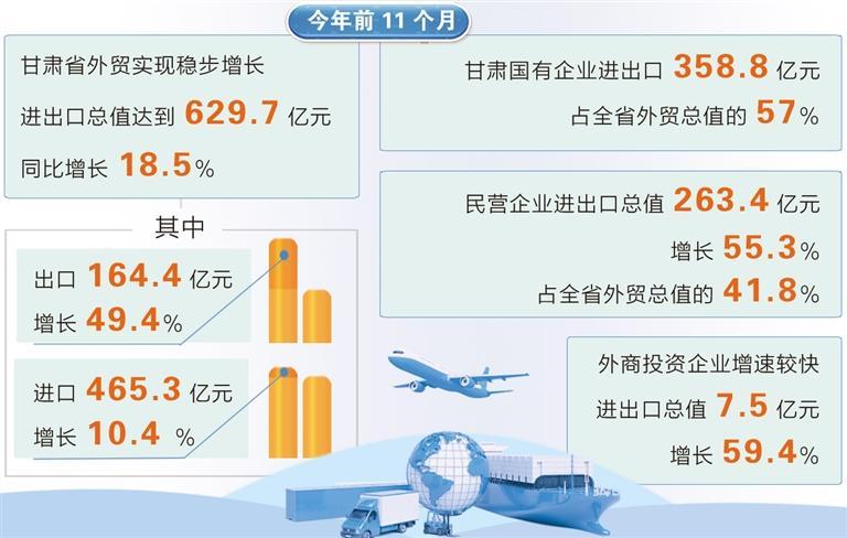 原标题:前11个月甘肃外贸进出口总值达到629.7亿元 同比增长18.5%