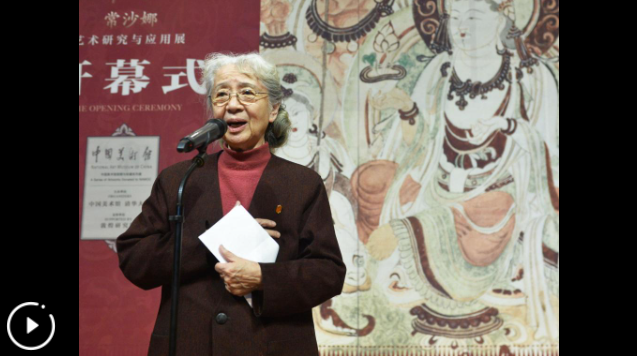 常沙娜在“花开敦煌——常沙娜艺术研究与应用展”开幕式上致辞。新华社记者 鲁鹏 摄
