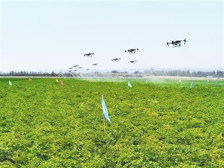 8月下旬,永昌县开展无人机飞防作业(资料图)。本组图片由新甘肃·甘肃日报记者 马国顺 摄