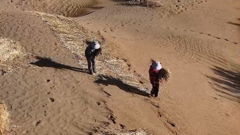 【甘快看】甘肃阿克塞:雪后治沙绘新景