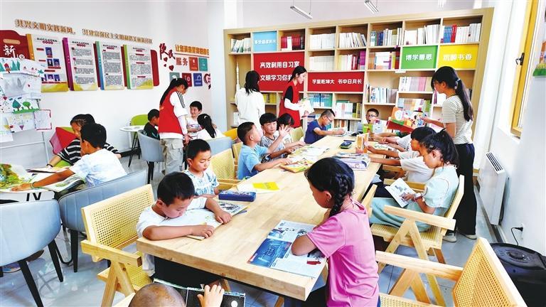 在陈家新村暑期托管班,志愿者老师带领孩子们品读经典绘本。