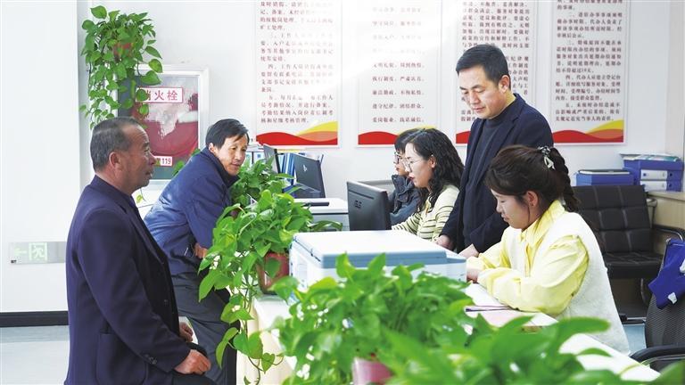 胡林家乡朝阳社区工作人员接待前来办事的居民。