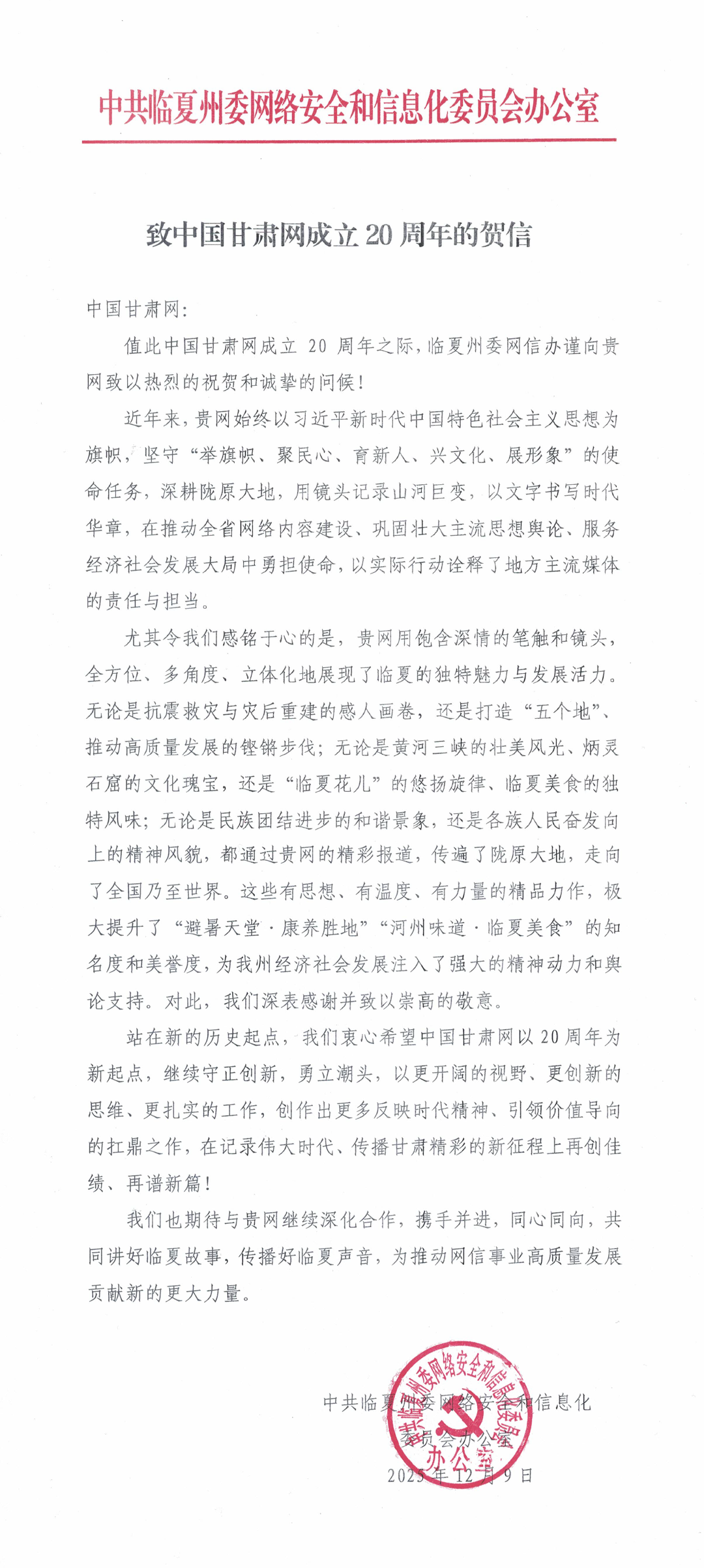 二十载·正青春丨临夏州委网信办祝贺中国甘肃网成立20周年