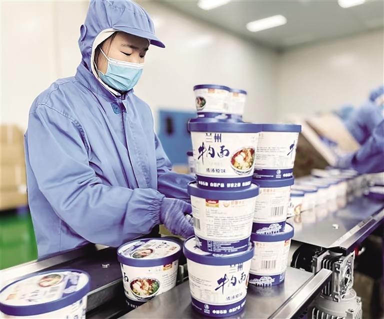 中国甘肃网12月23日讯 据兰州晚报报道(记者 周靖博 文/图)12月初,在永登县树屏食品产业园里,“蘭啵旺”预制拉面生产线高速运转,这款与黑神话悟空游戏联名的产品正迅速走红全国。