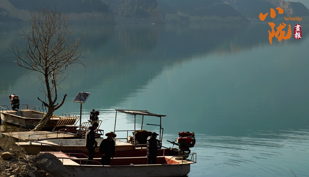 湛蓝的湖水被一叶小舟悄然划开,荡起层层清波。这抹灵动的倒影,是凝固蓝调中唯一的呼吸。船行碧玉上,在浩渺的冬日画卷里,绘出一道温柔的轨迹。