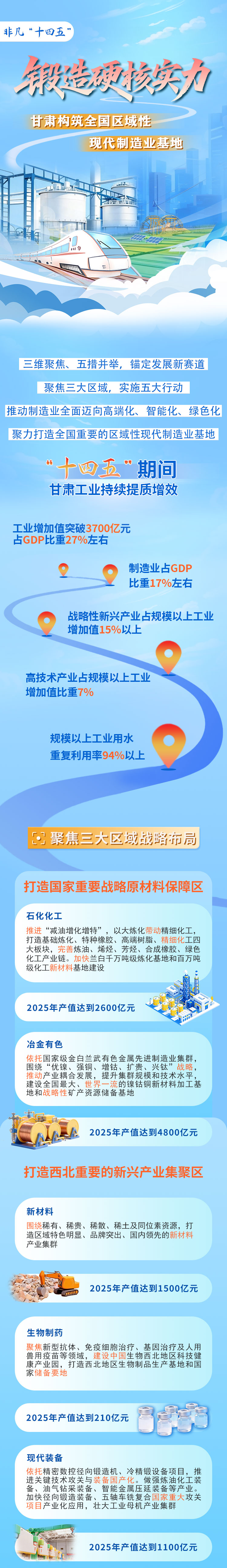 非凡“十四五”|锻造硬核实力 甘肃构筑全国区域性现代制造业基地
