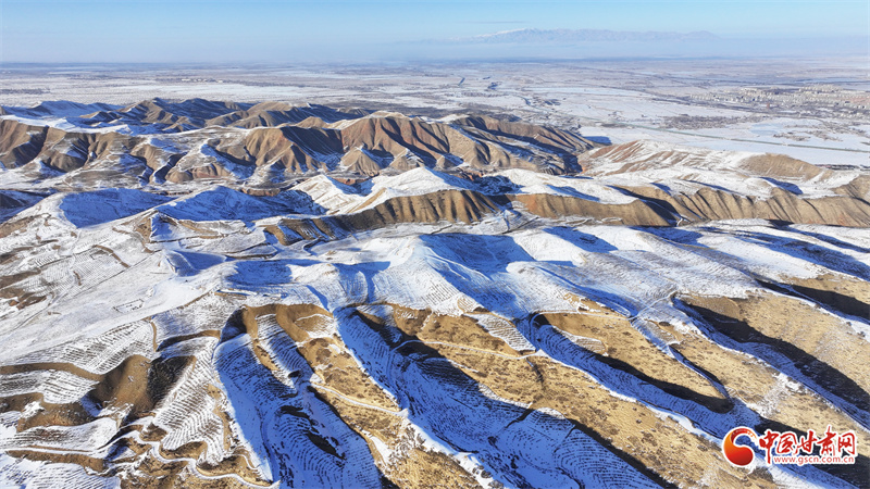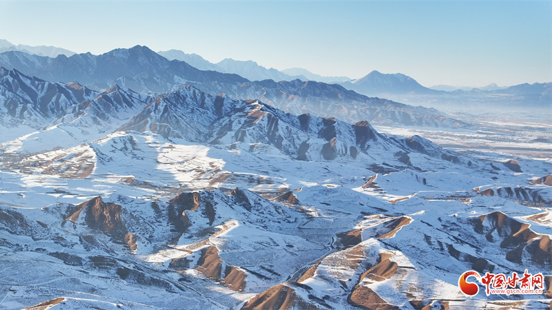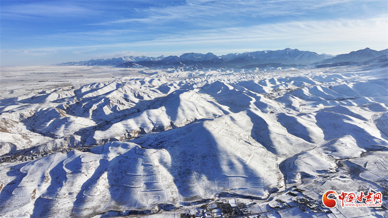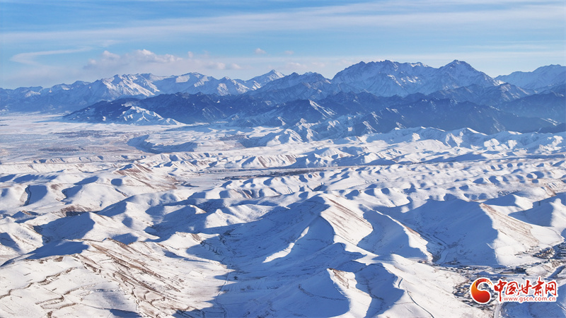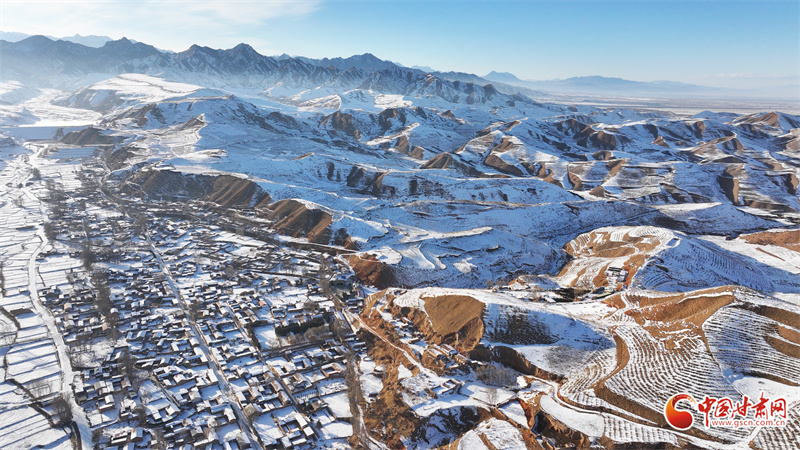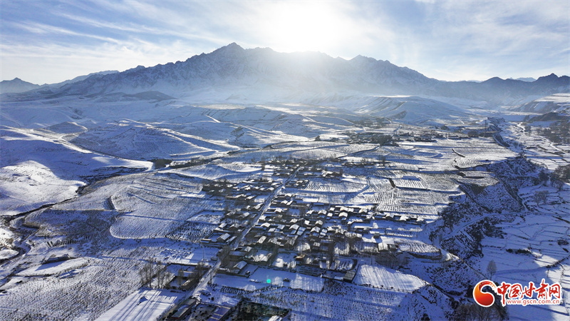 时下,祁连山下的民乐县银装素裹。静谧村庄、整齐房舍、辽阔田野、远处雪山,在阳光映照下,层峦与晨雾相映成景,美不胜收。