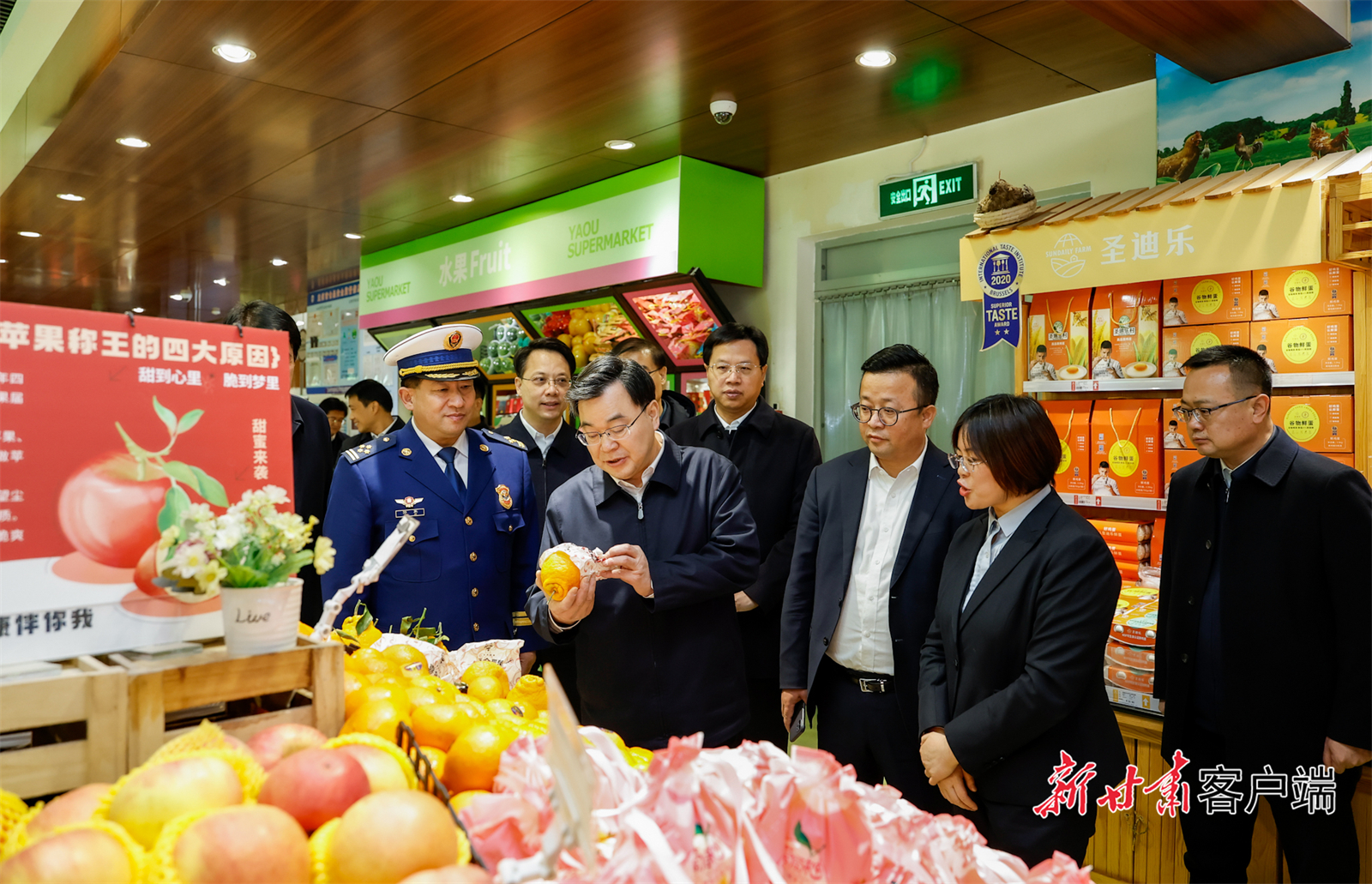 12月30日,元旦假期来临之际,省委书记、省人大常委会主任胡昌升在兰州调研检查安全生产、民生商品保供稳价和节日消费等工作,走访慰问全国先进工作者、老党员和基层一线工作人员,向全省人民致以节日祝福。新甘肃·甘肃日报记者 孟捷