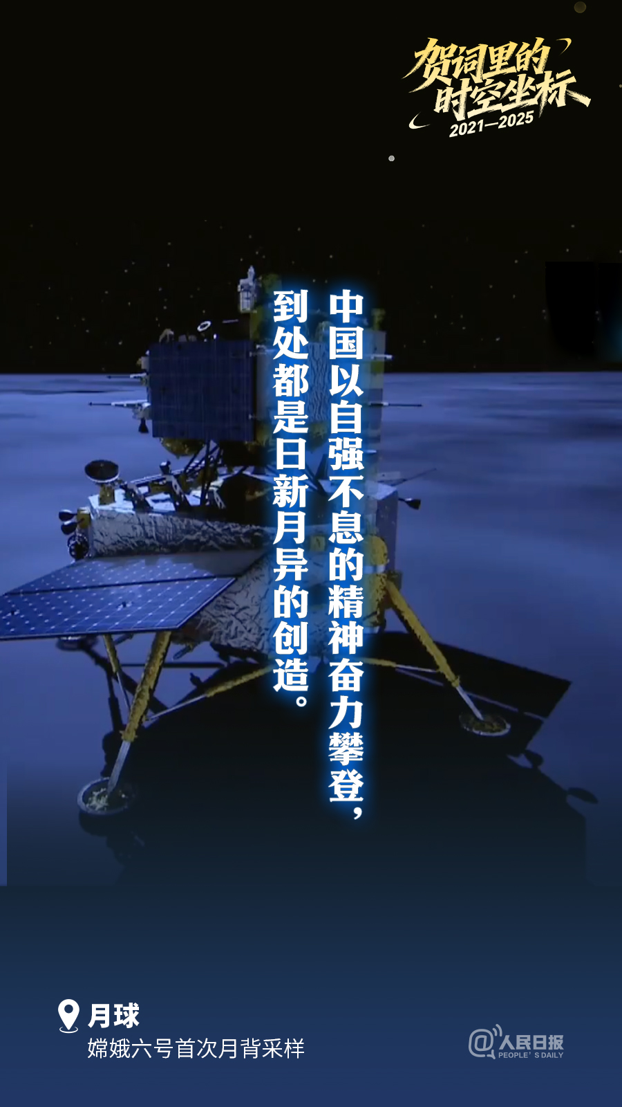 在浩瀚太空中,中国人的足迹不断延伸。从2021年新年贺词中的“天问一号”“嫦娥五号”,到2023年新年贺词中“中国空间站全面建成,我们的‘太空之家’遨游苍穹”,再到2025年新年贺词中“嫦娥六号首次月背采样”……这一连串的太空坐标,记录了中华民族从仰望星空到驻足星空的非凡跨越,展现了中国人逐梦星辰的豪情壮志。