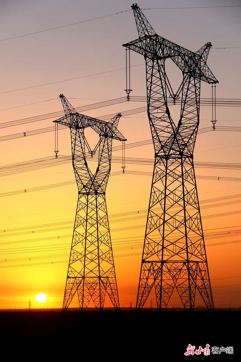 清晨,一轮红日从敦煌市七里镇戈壁深处升起,与新能源输电线路交相辉映。(资料图)新甘肃·甘肃日报通讯员 张晓亮 张文瑾/摄