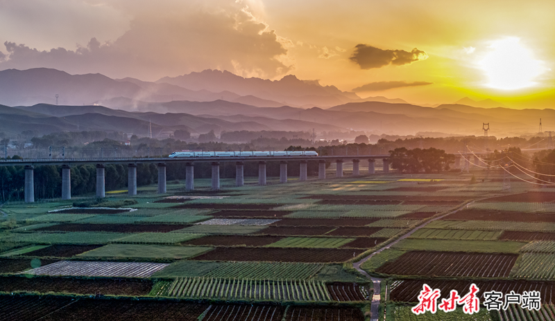 兰张高铁的列车驰骋于天祝县金强川田野,与远处祁连山相映成画。(资料图)新甘肃·甘肃日报通讯员 赵世鹏/摄