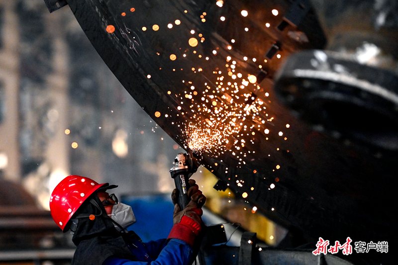 兰石集团高端装备产业园车间内,弧光闪闪,焊花飞舞。(资料图)新甘肃·甘肃日报记者 丁凯/摄