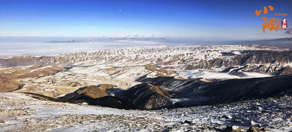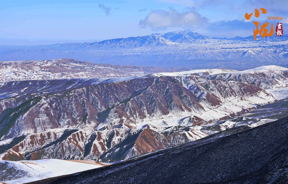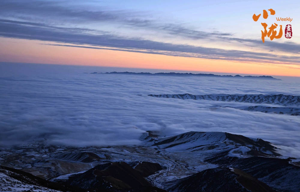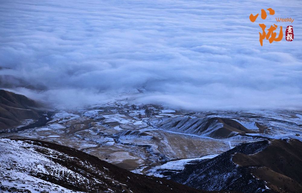 极目远眺,茫茫云海低垂,河西走廊正笼罩在一片飞雪之中。能够想象到,那雪花似漫天飞絮,簌簌落下,染白了戈壁的苍凉、绿洲的生机,将千里沃野与长城烽燧都裹进一片素白里,天地间尽是苍茫又温柔的诗意。云海中露出逶迤山脊,宛若一条蛰伏的巨龙,默然守护河西走廊。