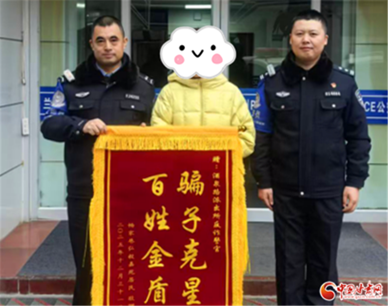 新年伊始,兰州市公安局城关分局酒泉路派出所收到了一份特殊的“新年礼物”:辖区居民王女士将一面“骗子克星 百姓金盾”的锦旗,送到民警张继胜、宋健伟手中,感谢民警在紧急时刻为其保住160万元资金。