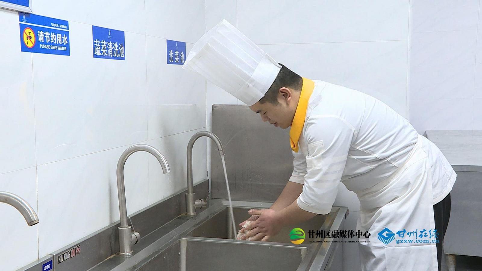 下午四点,张掖华辰国际大酒店的后厨一片忙碌。在这里,节水从淘米开始就成为了习惯。淘米水被收集起来用于初步清洁,感应式水龙头取代了手拧式,肉类化冻也改用更节水的方式。这些细节的调整,是酒店全流程节水网络的开端。