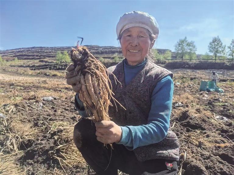 村民展示采挖的黄芪