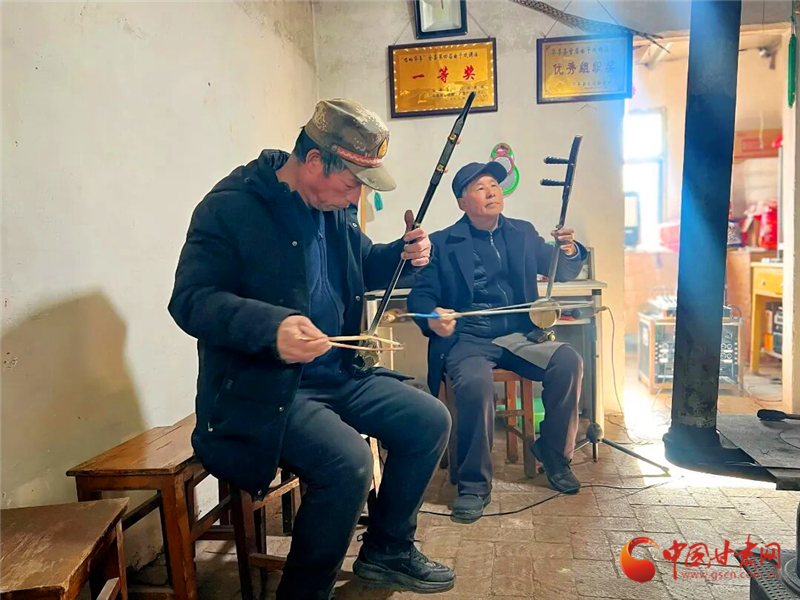 不远处的文化活动室里,则是另一番韵味。国家级非遗华亭曲子戏在这里悠扬传唱。老艺人们手持三弦、板胡倾情伴奏,年轻人一字一句跟着学唱,从“前月调”到“月调尾”,乡音婉转,戏韵绵长。简易舞台旁挤满了观众,不时有人跟着哼唱,掌声、叫好声此起彼伏。“让年轻人接过这门手艺,曲子戏才有未来。”一位老艺人边调弦边感慨。