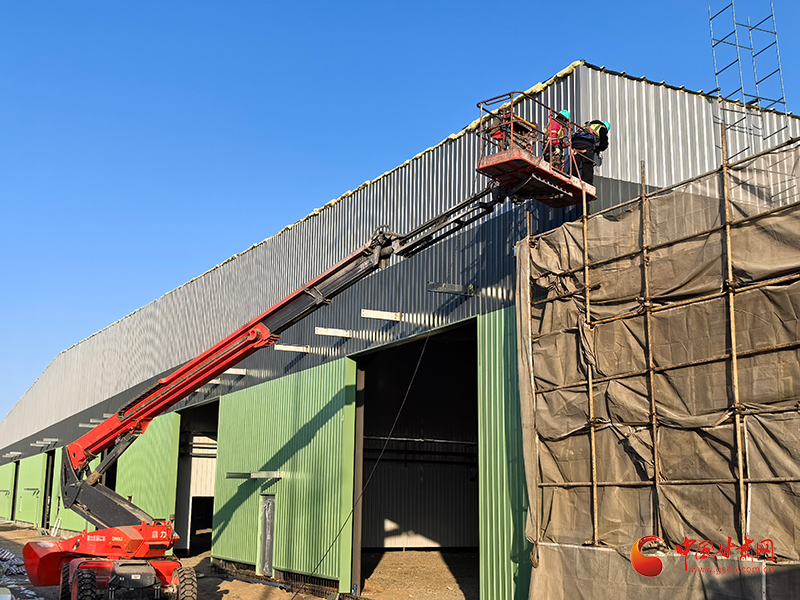 同样在南华工业园,上海电气风电(张掖)叶片科技有限公司叶片基地二期项目建设现场亦是一派繁忙景象。焊接声、切割声与机器轰鸣声交织回荡,工人们正加紧推进墙面、屋面围护施工,各项工序有条不紊、高效推进。目前,项目基础施工、主体钢结构框架已全部完工,墙面及屋面围护工程完成90%,水电安装进度达80%,朝着早日竣工投产稳步迈进。