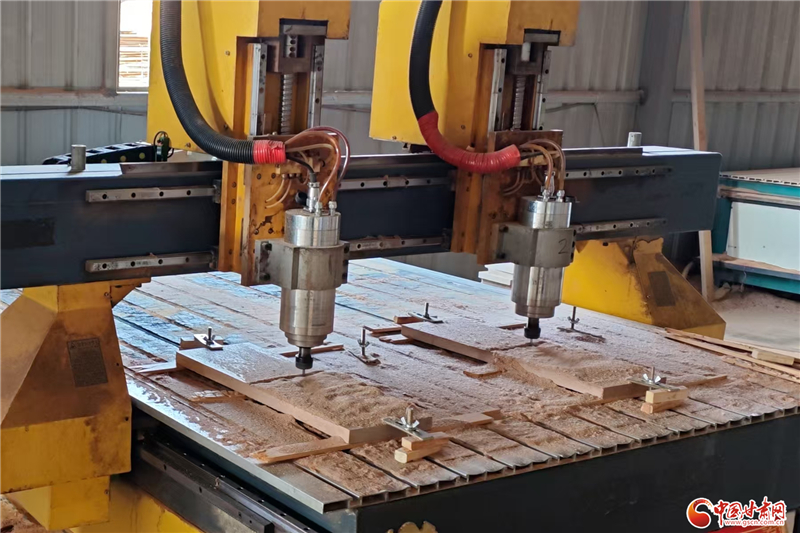 走进生产车间,传统与现代的交融场景扑面而来。一侧的非遗手工工坊里,匠人们手持刻刀,将圆雕、浮雕、透雕等精湛技法融入木纹,指尖流转间,普通木材逐渐化作精美的纹样,延续着甘谷木雕千年的非遗匠心;另一侧的智能制造和数字工厂车间内,十余条精雕生产线有序排布,机器臂精准伸缩、数字雕刻设备高速运转,实现了木雕产品的规模化量产,产出的产品广泛适用于古典家具制作、园林建筑装饰、民间四合院修缮等多个场景,木雕产品远销四川、内蒙古、陕西等地。