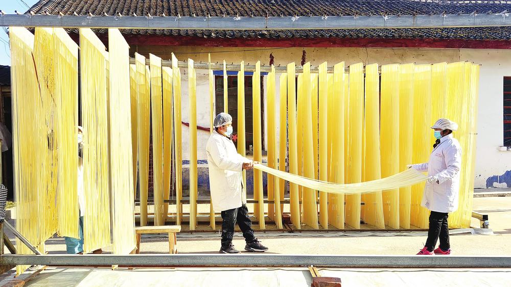 随着口碑不断传播,他家的挂面成了当地响当当的农家品牌。因为是纯手工制作,制作时间长,产量上不去,为了满足乡亲们的需求,郭师傅着手办起了合作社,带领大家把手工挂面产能扩大。眼下,正是挂面生意最兴隆的时候。