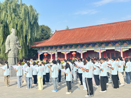 “青春力量”注活力,实践主体更为多元。2025年暑期,“以青春之名 赴家乡之约”大学生暑期新时代文明实践活动汇聚了500余名大学生志愿者。他们在潜夫山森林公园王符雕像前齐诵《潜夫论》,感悟传统文化;走进博物馆、企业、应急消防科普基地,深入了解家乡发展;穿梭在田间地头,用青春的脚步丈量家乡的热土。这些充满朝气的年轻人,成为传播文明、建设家乡的“生力军”和“代言人”。