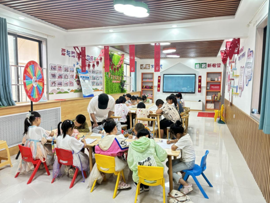 大学志愿者在孟坝镇社区开展“小手拉大手”暑期实践活动