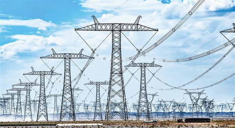 瓜州县境内一条条“高速公路”将电力输送至全国多地。新甘肃·甘肃日报记者 高樯 田蹊