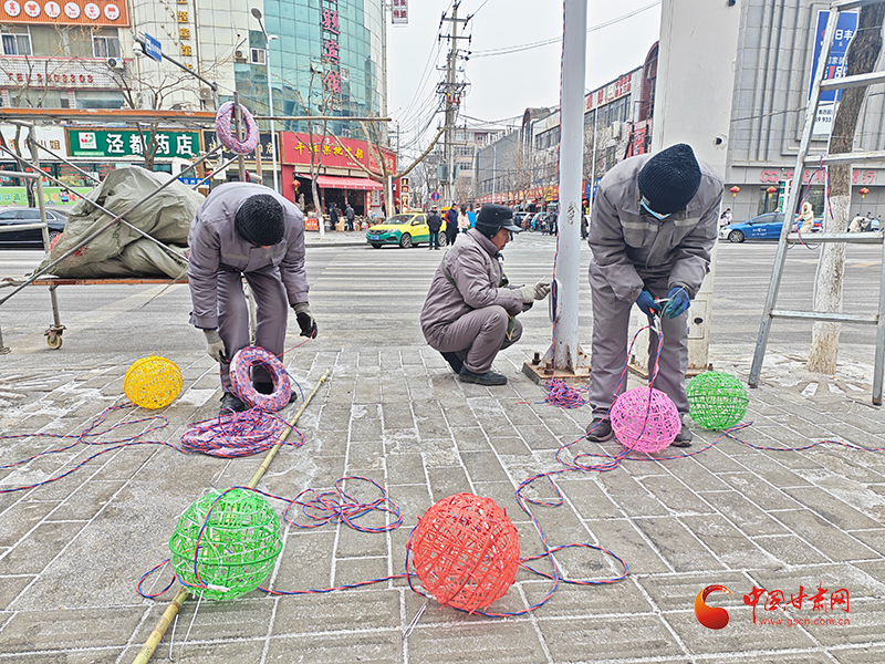 据悉,为营造欢乐祥和的节日氛围,让市民度过一个温馨愉快的春节,自1月10日前后起,该县启动春节亮化装饰工作,重点在泾州街、安定街等路段悬挂灯笼与灯带,以光影点綴街景,传递美好新春祝福。