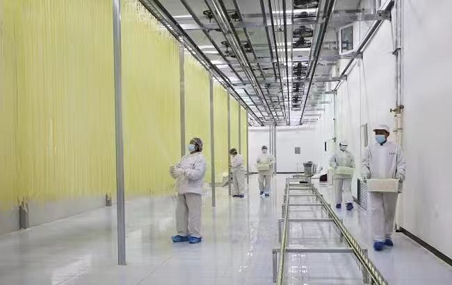 “吸溜……”一碗浇上羊肉汤的手工挂面下肚,醇厚筋道的口感混着麦香直抵舌尖,这是民乐县三堡镇人刻在骨子里的年味记忆。隆冬时节,祁连山北麓的三堡镇寒意正浓,但甘肃雪麦农业产业发展有限公司的标准化厂房里却暖意融融——20余名工人穿梭在晾晒架间,揉面、盘条、拉伸、晾晒一气呵成,缕缕洁白挂面如银丝垂落,在阳光下泛着温润光泽,空气中弥漫的麦香,让乡村的年味儿愈发醇厚。