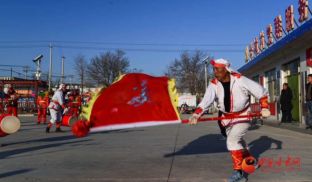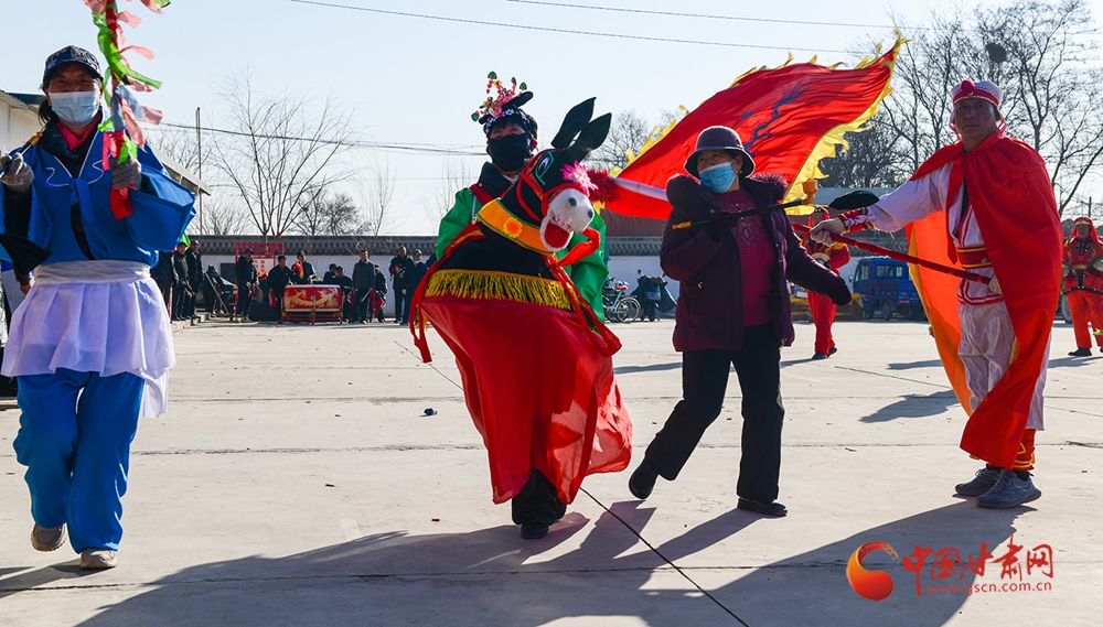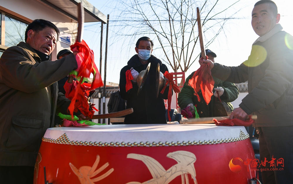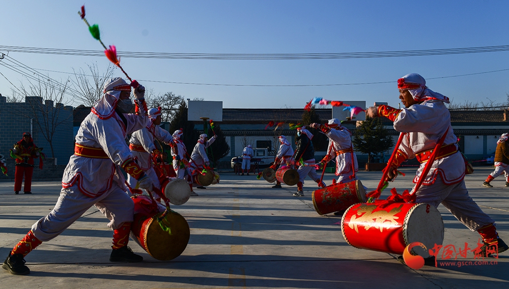 1月23日,阳光明媚的早晨,景泰县草窝滩镇长城村村委会的院子里,全村十几个村民小组的100多名社火爱好者齐聚一起,开始进行社火演练,为马年春节的到来做准备。