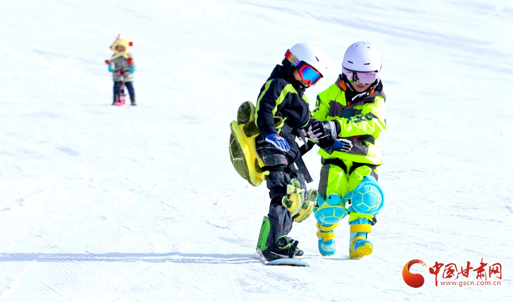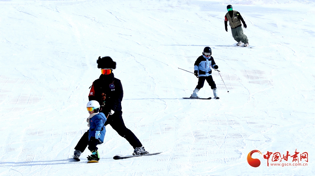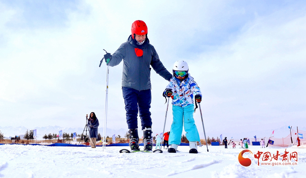 1月24日,在张掖肃南裕固族自治县的康乐草原祁连山滑雪场,冰雪爱好者和游客携孩子一同迎风驰雪,乐享冰雪运动的激情。他们在运动中强健体魄、磨炼意志,同时迎接即将到来的新春。