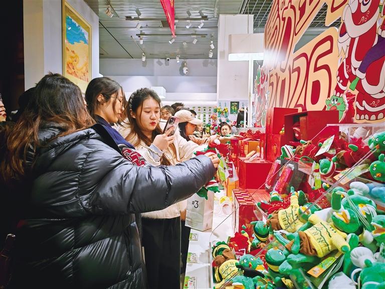 互动区内,“抓马集福”“马上套圈”“翻翻快乐”等趣味活动排起了长队。观众们或在奔马荧光画板上挥洒创意,或在幸运翻牌区解锁惊喜,或在“心响事成”祝福墙写下马年期许,摇响铃铛传递美好心愿。“人太多了,只来得及玩找贴纸的游戏,但集齐五个的瞬间特别有成就感。”孙杨涵的话语道出了现场观众的热情。
