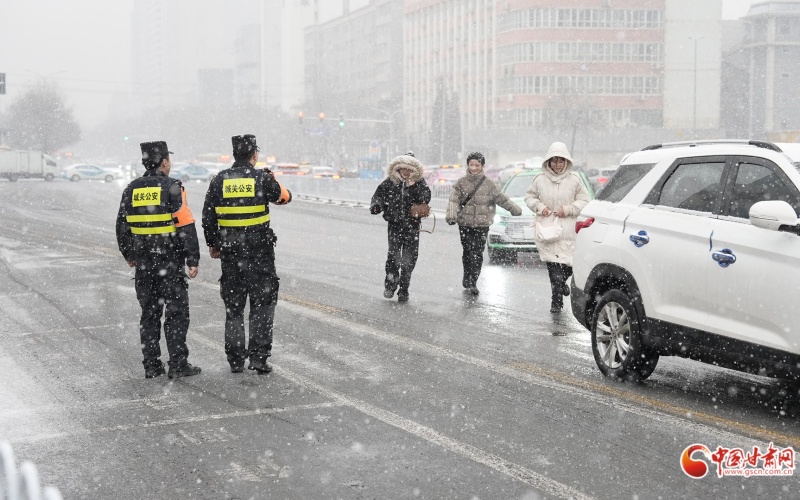 1月29日,金城兰州迎来降雪天气。漫天大雪中,兰州公安民辅警们把赏雪模式切换成战斗模式,迎着风雪出发在岗位上“浴雪奋战”。民辅警们清理积雪、疏导交通、帮助群众,让大家少一点阻碍、多一份安全。