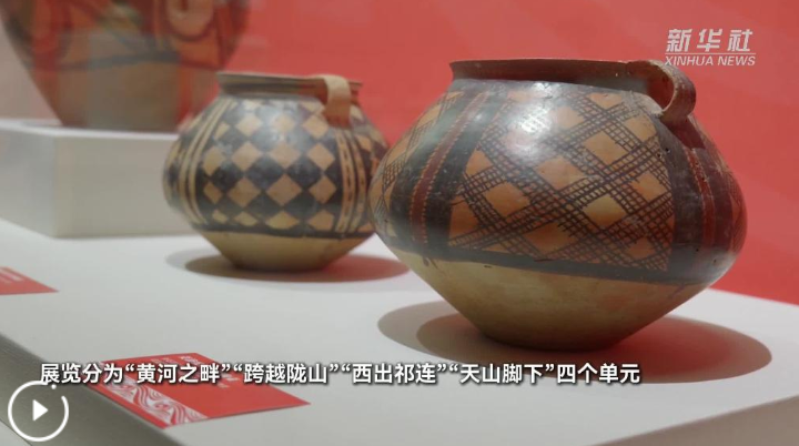 这里,是正在甘肃省博物馆展出的“从黄河到天山——史前彩陶的西渐之路”彩陶展览。甘肃省博物馆携手新疆维吾尔自治区博物馆,并联合甘新两地其他13家文博机构,以一件件珍贵文物为线索,全面梳理了发源于黄河中上游地区的史前彩陶文化的传播脉络。