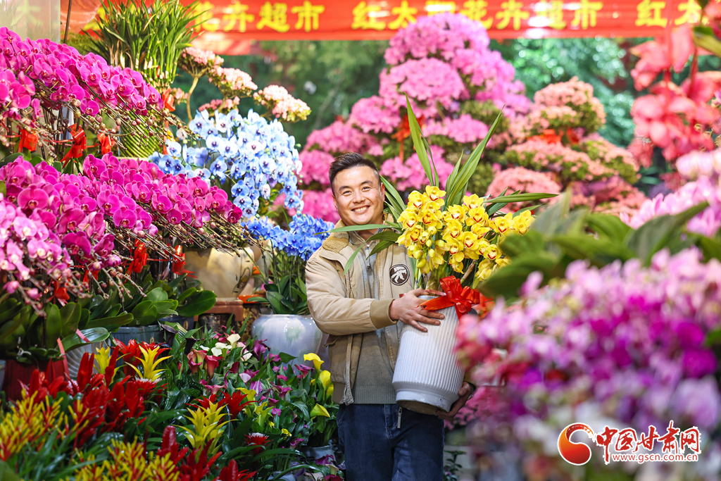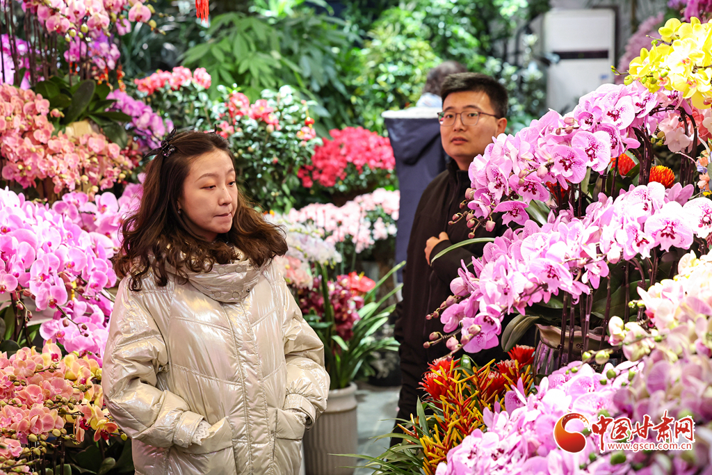 春节临近,兰州市各大花卉市场年宵花迎来销售旺季。1月31日,在城关区芳草园花卉市场,各色蝴蝶兰被摆在店铺C位,缤纷色彩相互交织,与冬青、金桔搭配出满满年味。不少市民专门前来挑选蝴蝶兰,希望将这份美好寓意带回家中,用盛放的鲜花点亮新春,也让年味更加饱满温馨。
