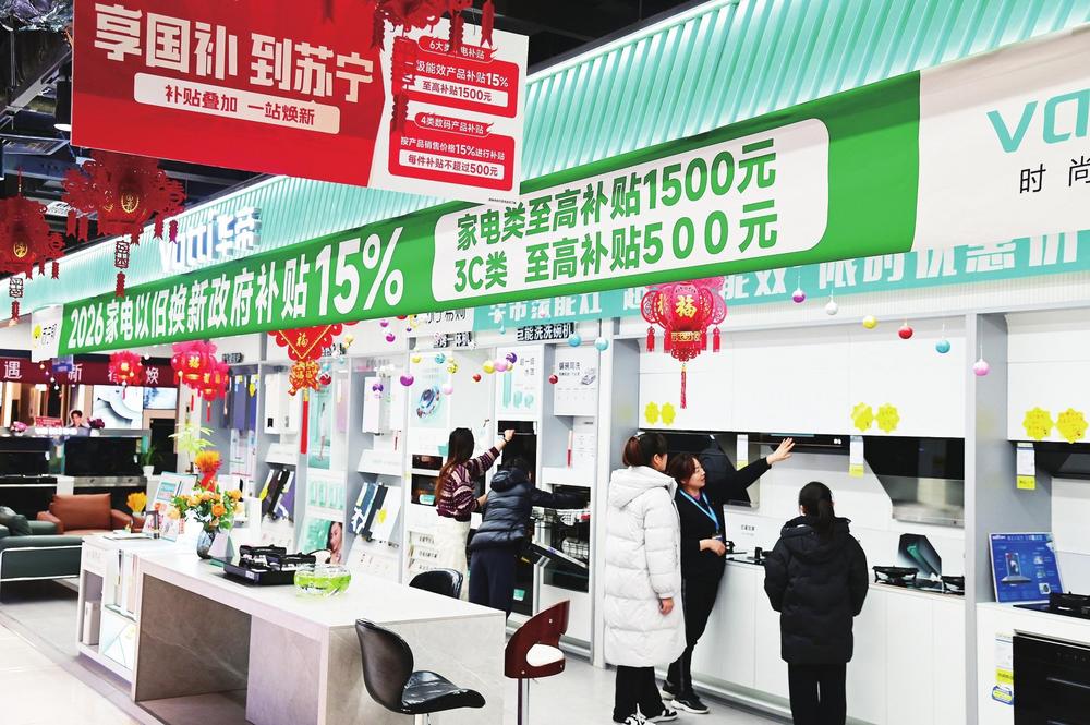 大寒节气刚过,兰州西关商圈的苏宁易购超级体验店内已是暖意融融。兰州市民张欣丽盯着一款海信电视的价格标签感慨:“这款85英寸的电视机原价7411元,叠加国补、门店优惠后,到手6299元,这波福利太实在了。”她果断下单的背后,是2026年“新国补”政策在甘肃落地后,消费热潮涌动的一个缩影。