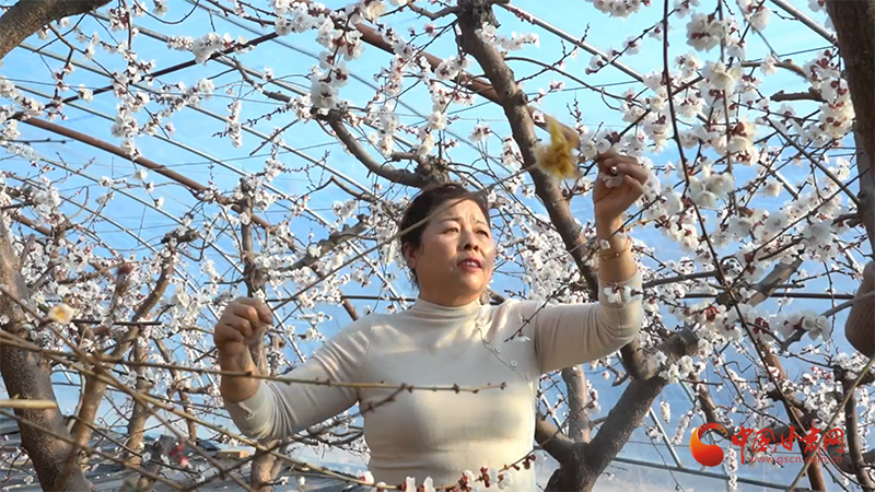 陇原大地寒意正浓,静宁县城川镇靳寺村的果蔬大棚内却暖意融融、花香四溢。20余座标准化大棚里,杏花皎白似雪,桃花粉艳如霞,果农们手持软毛刷,小心翼翼地为盛放的花朵人工授粉,指尖翻飞间,播下了丰收的希望。