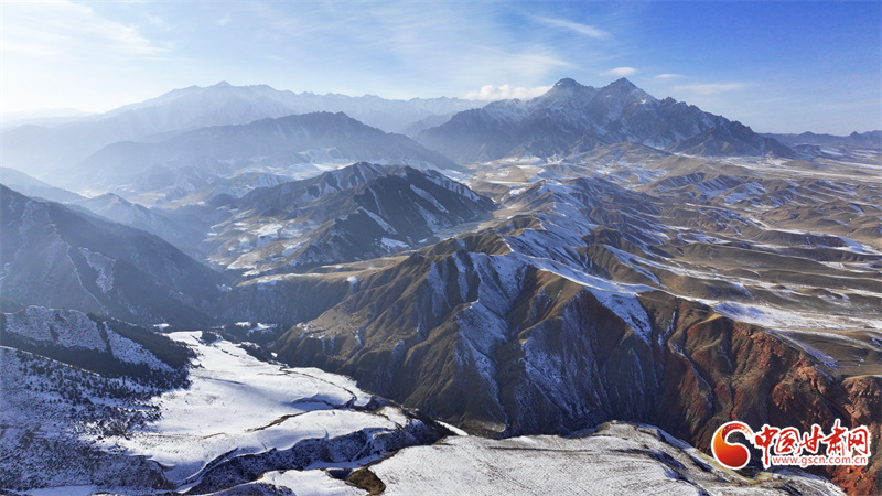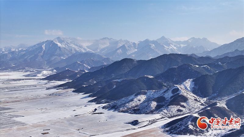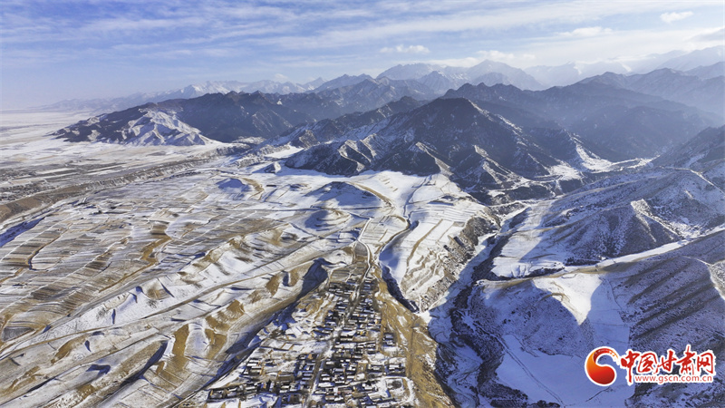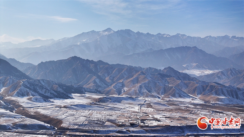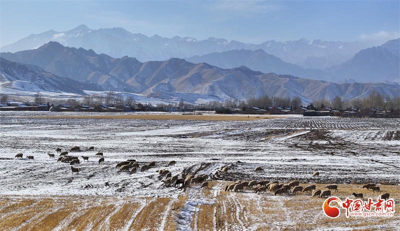 近日,一场初雪过后,在甘肃省张掖市民乐县境内,连绵起伏的祁连山脉被皑皑白雪覆盖,层峦叠嶂宛如朵朵“浪花”。山脚下,田野与村庄错落分布,牛羊在覆雪的田地上悠然觅食,一幅雄浑壮美的水墨画卷在天地间铺展开来。
