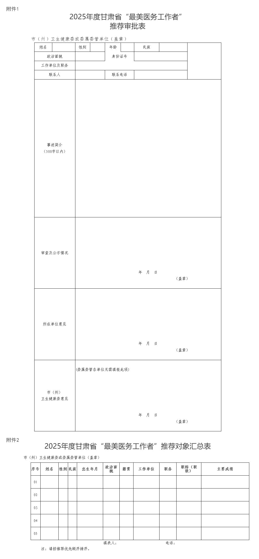 附件:1.2025年度甘肃省“最美医务工作者”推荐审批表