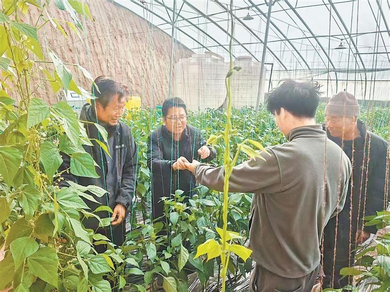 泾川县汭丰镇设施蔬菜产业链,党委邀请专家团队给种植户推广新技术。