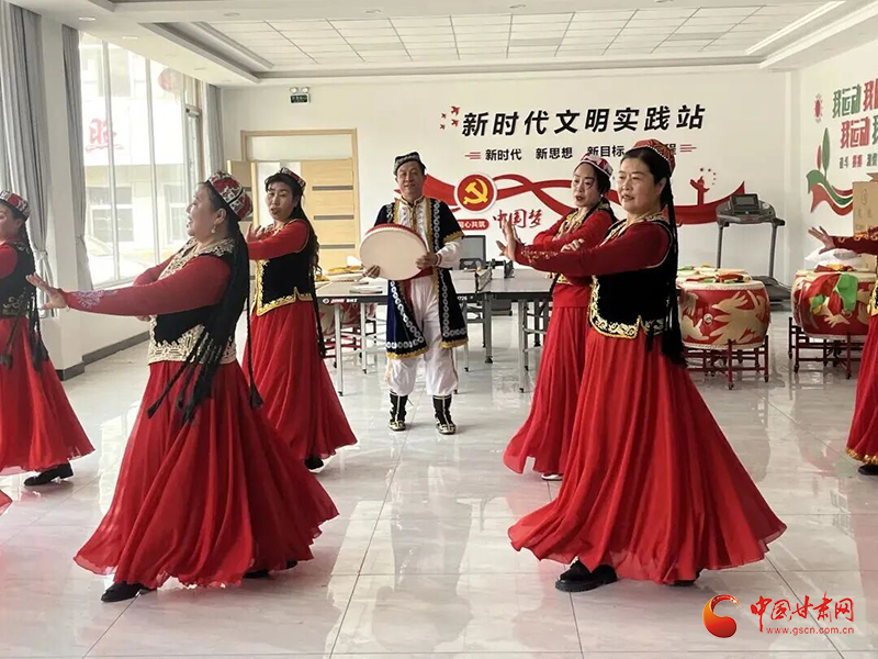 与此同时,安丰社区活动室里呈现出“南北荟萃”的热闹景象。一楼的排练厅内,秧歌队正踩着欢快的鼓点排练。“扭起来,把扇子甩开,表情要喜庆!”领队一边示范一边鼓励大家。队员们手持彩扇,身姿轻盈,脸上洋溢着笑容。二楼的活动室里,居民正在排练新疆舞《花儿为什么这样红》,伴随着悠扬的民族音乐,舞者们颈部的灵动、手腕的翻转让围观者赞叹。