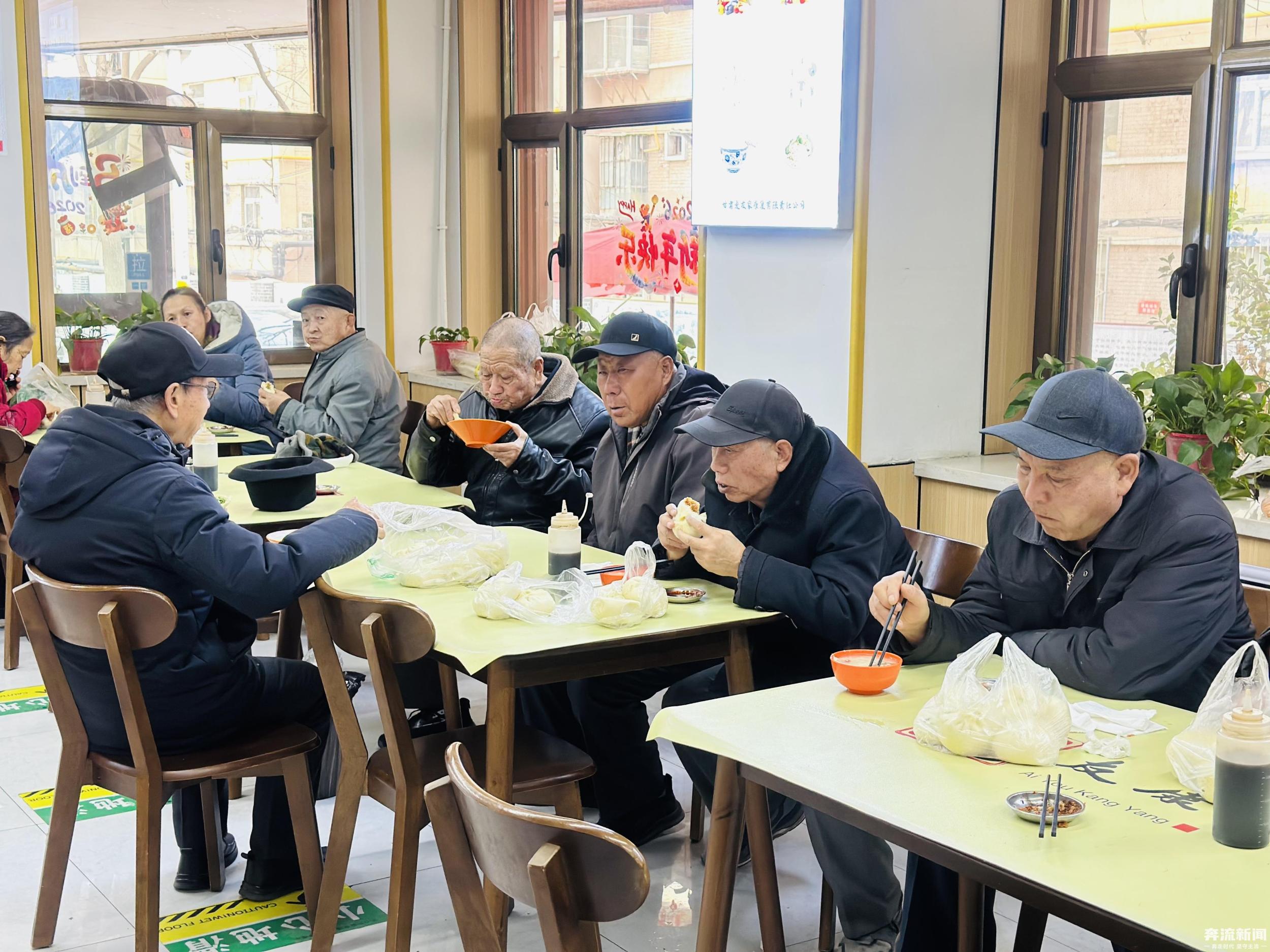 75岁的马惠恩是这里的常客,他花13元买了7个包子和一碗醪糟鸡蛋汤,与熟识的老伙伴围坐餐桌边吃边聊。“我几乎天天来,这儿的饭菜软烂、少盐,份量足,正合我们老年人的胃口。”他笑着说。