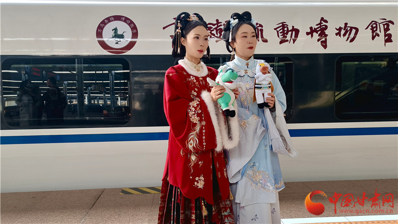 为让旅客沉浸式感受陇原文脉,22名身着特色服饰的专业讲解员在车厢间流动讲解,将文物背后的故事娓娓道来。