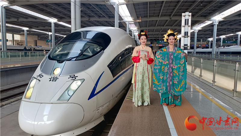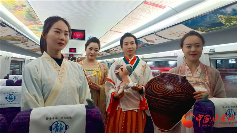 这趟列车,是敦煌研究院、甘肃省博物馆、甘肃简牍博物馆、兰州市博物馆、天水市博物馆、武威市博物馆、平凉市博物馆、临夏州彩陶馆(州博物馆)、和政古动物化石博物馆九家国家一级博物馆联袂打造的“高铁流动博物馆”。