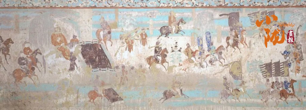 在甘肃璀璨的石窟艺术中,马早已超越了具象的生灵,化作融入笔墨丹青的文化灵韵。莫高窟的壁画里,马的形象栩栩如生、各具风情:西魏249窟的青蓝色翼马,肩生双翼、身姿轻盈,与仙人并肩起舞,藏着古人对天空与自由的向往;晚唐12窟的作战图中,战马披甲驰骋、泅水挣扎,真实还原了古战场的惨烈与悲壮;盛唐时期的骏马画像,体态雄壮、气度轩昂,每一笔勾勒都藏着时代的审美与家国情怀。
