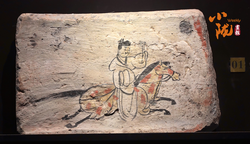 除了石窟丹青中的马韵,陇原大地上的驿使图壁画砖,更将马与丝路通信的传奇,永远定格在岁月之中。这幅出土于甘肃的魏晋驿使图,是中国最早的邮政通信形象写照,画面中,驿使身着短衫、头戴帻巾,身背文书囊,策马疾驰间衣袂翻飞,身下的骏马四肢腾空、昂首扬尾,虽未绘出缰绳,却尽显迅捷灵动之势。