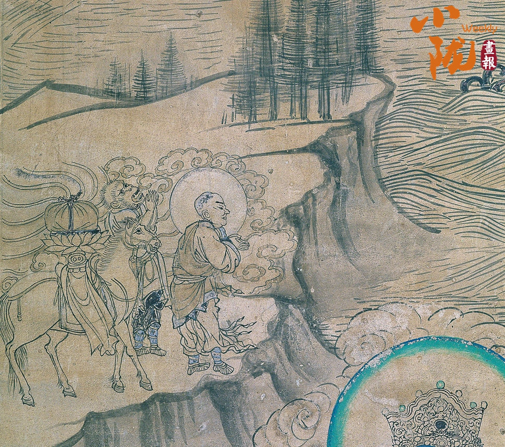 榆林窟作为莫高窟的“姊妹窟”,在马文化的呈现上更藏别样惊喜,更是《西游记》故事图像的重要源头。第3窟《普贤变》中的玄奘取经图,白龙马稳稳驮着佛经立于河岸,紧随玄奘与猴面行者拜别普贤菩萨,这一形象比明代《西游记》典籍早了三百余年,将丝路取经故事与马的意象完美联结,成为艺术史上的经典瞬间。