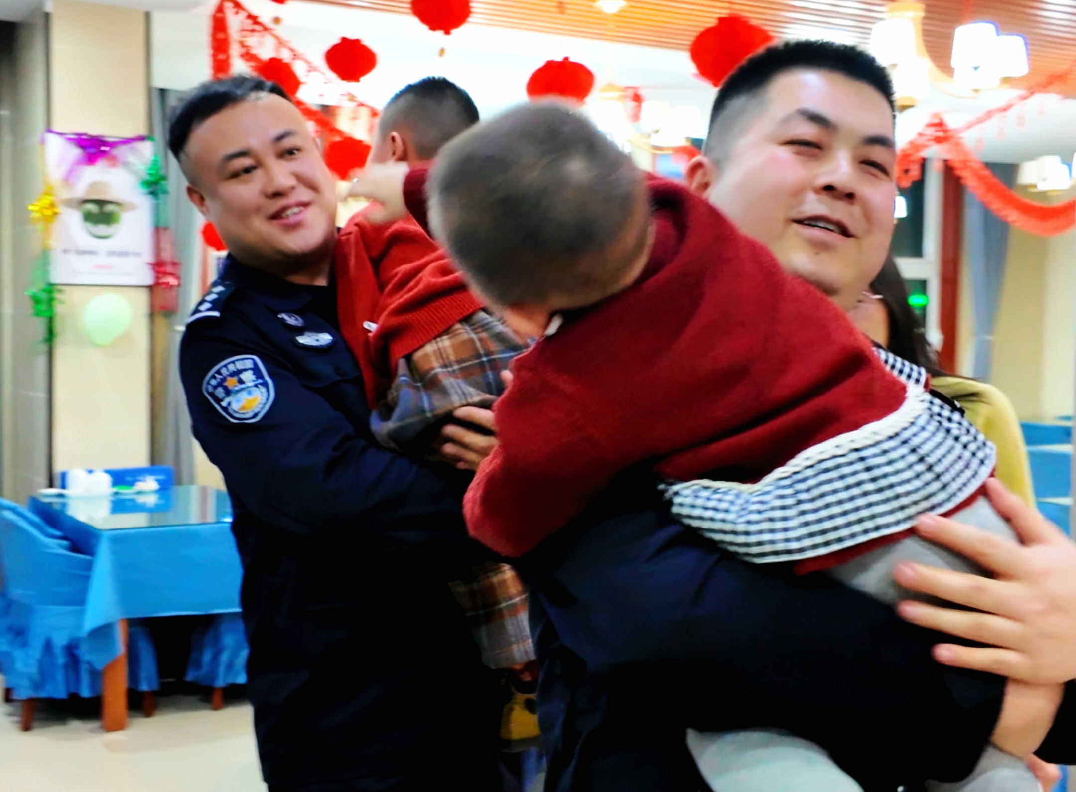 鲜花,拥抱,满屋子的掌声和笑声,吹散了一路的风尘和疲惫。千里团聚属于两个家庭,快乐却蔓延在整个检查站。