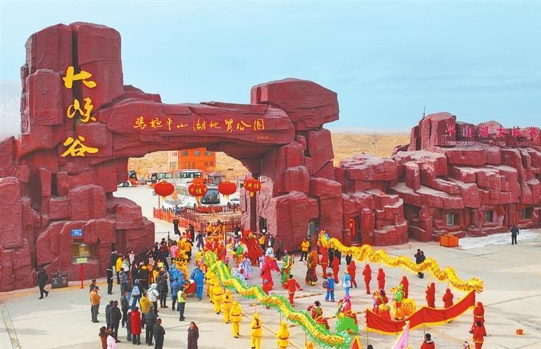 张掖市甘州区平山湖大峡谷景区社火表演。新甘肃·甘肃日报通讯员 李自海